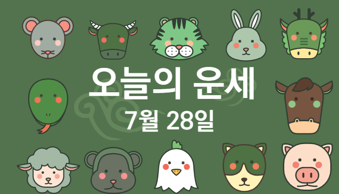 7월 28일 오늘운세 전해드립니다. 매일 바뀌는 날씨처럼 우리 운세도 매일 변한다고 합니다. 오늘 보는 운세가 좋게 나온다면 오늘 하루는 기분 좋게 보내시면 됩니다. 혹여나 운세가 좋지 않게 나오더라도 너무 실망하지 마시고, 오늘 하루는 행동과 언행을 조심하고 다가오는 내일을 준비하는 하루로 보내면 좋을 것 같습니다.