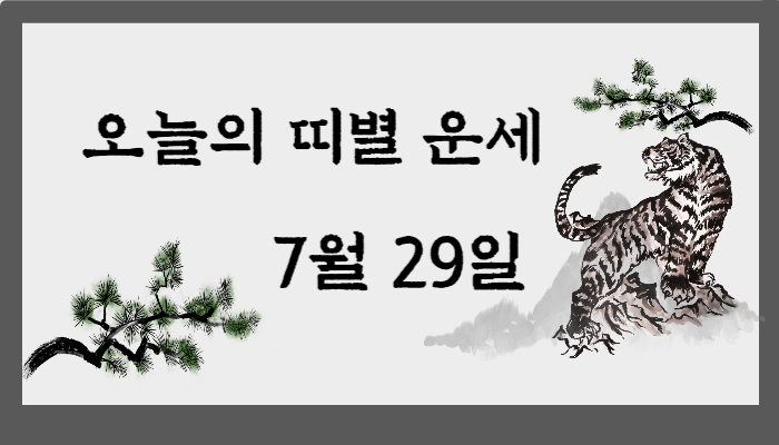 7월 29일 오늘 운세 전해드립니다. 매일 바뀌는 날씨처럼 우리 운세도 매일 변한다고 합니다. 오늘 보는 운세가 좋게 나온다면 오늘 하루는 기분 좋게 보내시면 됩니다. 혹여나 운세가 좋지 않게 나오더라도 너무 실망하지 마세요. 오늘 하루는 행동과 언행을 조심하고 다가오는 내일을 준비하는 하루로 보내면 좋을 것 같습니다.